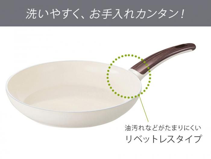 ウッドビー フライパン 2点+ガラス蓋2点セット 送料無料 分類で探す キッチングッズ フライパン ブランドで探す グリーンパン ウッドビー WOODBE 価格帯(税込) 2万円台の商品 キッチン用品 送料無料 ラッピング承ります 昼の森をイメージしたホワイトカラーに ウッド調の樹脂ハンドルを組み合わせたウッドビーフライパン 温かみのあるナチュラルなデザインが魅力です greenpan-05083198 22,000円(税込) 0円 SOLD OUT 製品について性能詳細お買い物ガイドクロッカについて 温かみのあるナチュラルなデザインが魅力のウッドビー4点セット 昼の森をイメージしたホワイトカラーに、ウッド調の樹脂ハンドルを組み合わせた「WOOD-BE ウッドビー コレクション」。温かみのあるナチュラルなデザインが魅力です。 内面も外側もホワイトカラーのセラミックコーティングは、キッチンをナチュラルで明るい雰囲気に演出します。お料理の出来具合が確認しやすく、お皿に盛り付けた際のイメージもしやすいのもポイント。 内側にハンドルを接合するリベットが無いので、お手入れも簡単です。ハンドルは樹脂製です。 ○ サーモロン・セラミックコーティング 青りんごが目印の「サーモロン」は、グリーンパンがノンスティック(こびりつき防止)加工に採用しているセラミックコーティングであり、特許を取得しています。サーモロンは、フッ素樹脂(PTFE)を使用せず、鉱物(ほとんどが砂由来)の素材をコーティング加工ができるようゾルゲルという方法で溶液に変換しています。そのプロセスには、有害なPFAS、PFOA、鉛、カドミウムなど、人体や環境に影響を及ぼす化学物質は一切含まれていません。従来のノンスティック加工と比較して熱を均一に、素早く伝えるので、お料理を美味しく仕上げます。また、優れたノンスティック効果で、こびりつきにくく、お手入れも簡単です。 ○ マグニートIH 対応加工(底面) マグニートは、アルミニウム製のフライパンをIH対応にするためにグリーンパンが採用した独自のテクノロジー。電磁誘導粉末の層をアルミニウム底に装着して、磁気をもたせる技術のことです。ステンレスの板を貼ってないので、非常に軽く扱いやすいです。マグニートIH対応テクノロジーが駆使されたフライパンは、この層を底面全体に閉じ込めているので安定感が抜群。熱変形に強く、熱伝導性に優れています。IH はもちろん、ガス火やさまざまな熱源に対応しています。 サイズフライパン20cm:全長36.3×幅20.7×高さ6.5×深さ4.3cm / 590gフライパン26cm:全長44×幅26.7×高さ8×深さ4.7cm / 880gガラス蓋20cm:全長20.7×幅20.7cm / 410gガラス蓋26cm:全長26.7×幅26.7cm / 650g 材質本体:アルミニウム合金表面加工(内面、外面):セラミックコーティングハンドル:フェノール樹脂蓋:強化ガラス(全面物理強化)、フェノール樹脂 対応熱源ガスコンロ、IH(100V/200V)、ラジエント、ハロゲン 生産国中国 備考○食器洗浄乾燥機使用不可○調理(炒め物・焼き物)をする際は、必ず中火で30 秒〜1分程度、予熱してください。鍋が温まったところに少量の油かバターを入れてから調理をはじめてください。○熱伝導・熱保有率に優れているため、弱火〜中火での調理をおすすめいたします。○スチールウール製または研磨作用のあるナイロン製スポンジたわしのご使用はお控え下さい。○クリーナーや研磨剤を含んだ洗剤や塩素系漂白剤を含んだ洗剤は絶対にご使用にならないでください。○ノンスティック・コーティングを削らないでください。 RERATED ITEMS関連商品モコミチハヤミ ビタクラフト ウォックパン 26cm貝印 o.e.c. minima 3点セット DY5209