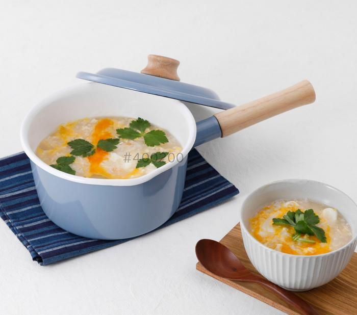 ホーローはガラス質で金気を出さないので食材が変色しにくく、ジャムやソース作り、野菜の下茹でにも適しています。