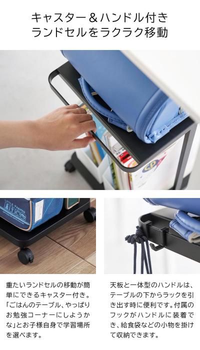 タワー ランドセル収納ラック キャスター付き 2段 1747/1748 送料無料 分類で探す インテリアグッズ 収納 その他収納用品 ブランドで探す 山崎実業 タワー tower 価格帯(税込) 6,000円台の商品 リビング用品 送料無料 ラッピング承ります リビングで学習するお子様のランドセルをダイニングテーブルの下に収納できるワゴン お片付けもラクラク 下段棚は学用品をまとめて収納できますtower-1747-8 6,820円(税込)0円 在庫入荷待ちホワイト6,820円(税込)在庫なし6,820円(税込)ブラック6,820円(税込)在庫なし6,820円(税込) 数量 カートに入れる 製品について性能詳細お買い物ガイドクロッカについてリビングで学習するお子様のランドセルをダイニングテーブルの下に収納できるワゴン リビングで学習するお子様のランドセルをダイニングテーブルの下に収納できるワゴン。子供部屋では、ランドセルの定位置に。お片付けもラクラク。下段棚は学用品をまとめて収納できます。フック付きで小物を引っ掛けることができます。オフィスのデスク下のバッグ収納にも使えます。 材質本体:スチール(粉体塗装)キャスター:ナイロン サイズ約W26×D32×H45cm(キャスター含む) 内寸サイ天板:約W26×D29cm下段棚:約W23×D32×H37cm 重量約2500g 耐荷重天板、下段棚:各約5kgフック1つあたり:約500gD3.4×H4cm以内のバー 付属品六角レンチフック×2 備考中国組立式 ブランド 製造元tower -タワー 山崎実業RERATED ITEMS関連商品タワー ハンガーラック Sタワー コードレスクリーナースタンド 3540/3541タワー フタ付きバケツ 12L S