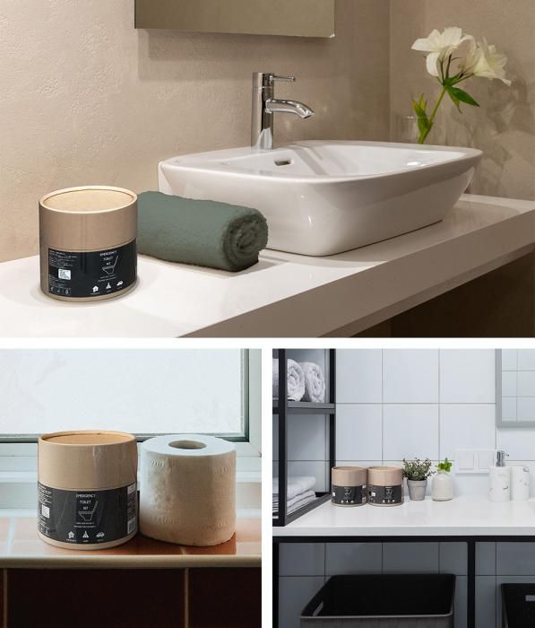 見える場所に保管しても違和感がないおしゃれなトイレットペーパー型のクラフトパッケージ。