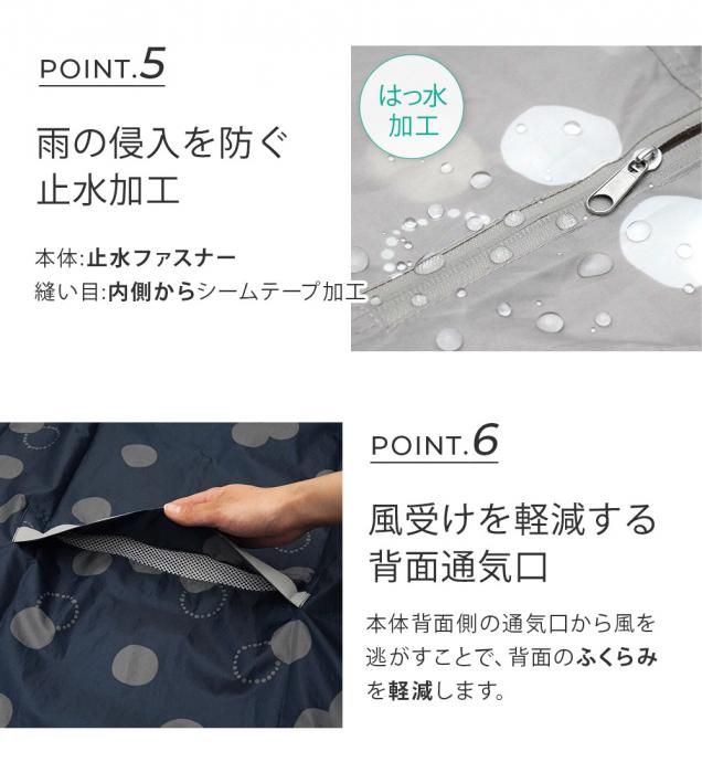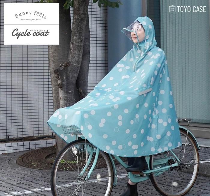前かごも身体もすっぽりカバーできるポンチョ形状のサイクルコート