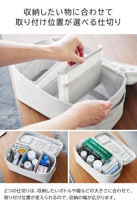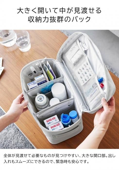 タワー 救急バッグ 1848/1849 送料無料 分類で探す インテリアグッズ 収納 その他収納用品 ブランドで探す 山崎実業 タワー tower 価格帯(税込) 4,000円台の商品 リビング用品 送料無料 ラッピング承ります 収納力抜群で軽くて持ち運びやすい救急バッグ 仕切りとポケットで細かく仕分けができます 大きな開口部で全体を見渡せて探す手間が省けますtower-1848-9 4,510円(税込)0円 在庫入荷待ちライトグレー4,510円(税込)4,510円(税込)ブラック4,510円(税込)4,510円(税込) 数量 カートに入れる 製品について性能詳細お買い物ガイドクロッカについて収納力抜群で軽くて持ち運びやすい救急バッグ 仕切りとポケットで細かく仕分けができる軽くて持ち運びやすい救急バッグ。大きな開口部で全体を見渡せて探す手間が省けます。左右にある8つのゴムバンドホルダーに体温計やチューブ類を立てて収納。お好みの場所に固定できるメッシュポケット付き仕切りで薬を立てて収納できます。 材質本体、仕切り:ポリエステル、ポリエチレン持ち手:ポリプロピレン面ファスナー:ポリエステル サイズ本体:約W33×D16×H18cm(持ち手含まず)仕切り:約W16×H13cm(面ファスナー部含まず) 内寸サイズ蓋ポケット:約W10×H11cm(1つあたり)仕切りポケット:約W15.5×H8cm(1つあたり)ゴムバンド:約W3cm(1つあたり) 重量約650g 耐荷重約5kg 容量約8L 備考中国 ブランド 製造元tower -タワー 山崎実業RERATED ITEMS関連商品タワー マグネットバスルーム多機能ラック 3548/3549タワー マグネットバスルームソープトレー 2段 3809/3810タワー 伸縮バスタブトレー 3546/3547tower ソープトレー 2段 ホワイト・ブラック 3601,3602タワー 吸盤ソープトレー 2段 3826tower tower吸盤タンブラー&ハブラシスタンド ヴェール タンブラー付き クリア・ブラック タワー ダストボックス&サイドテーブル 3988/3989タワー 手荷物収納ボックス 3544/3545タワー 引っ掛けアンブレラスタンド 3862/3863