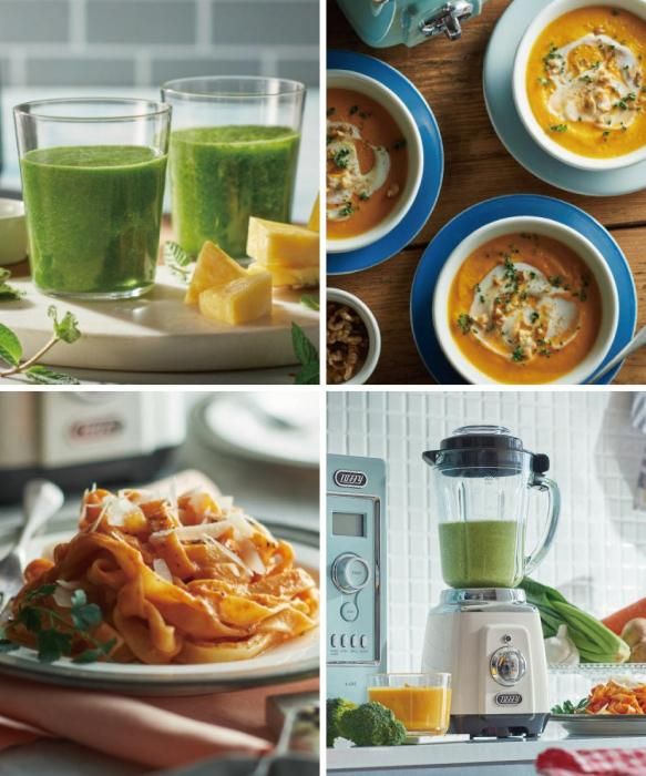 冷たいスムージーやジュースはもちろん、アツアツの食材も撹拌できるので、ポタージュやパスタソースなど、さまざまなメニューが1年中楽しめるブレンダー。
