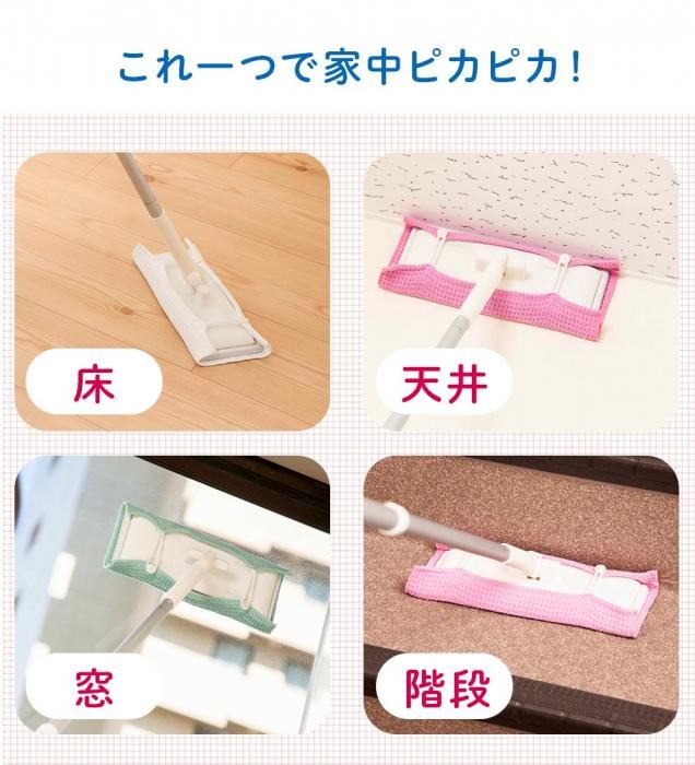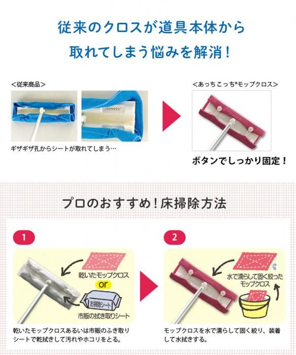 繰り返し使えて経済的、洗剤無しでキレイに拭けるモップクロス。