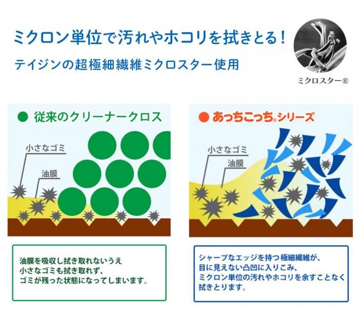 長繊維使いでケバが出ず、水でぬらして固く絞ってお使いいただくと水滴も小さいのですぐ乾き、拭きあとも残りません。