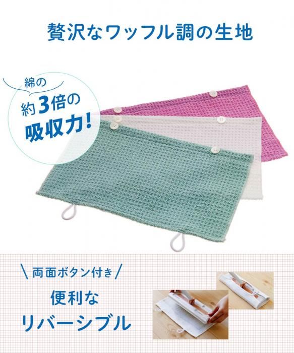 吸水性にも優れ、綿の約3倍の吸水力で多量の水分を素早く吸い取ります。