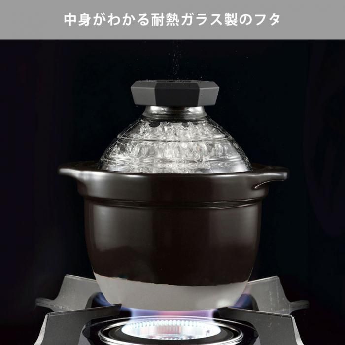 ご飯が炊ける様子が見える、耐熱ガラス製フタのご飯釜