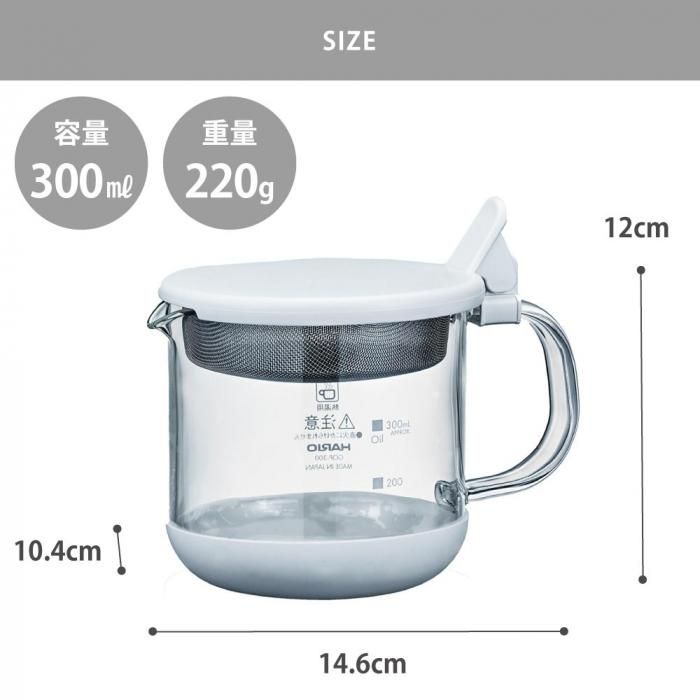 ハリオ ガラスのある生活 ガラスのコンパクトオイルポット GOP-300-W 送料無料 分類で探す キッチングッズ キッチン小物 オイルポット ブランドで探す ハリオ HARIO 価格帯(税込) 3,000円台の商品 キッチン用品 送料無料 ラッピング承ります 耐熱ガラス製のコンパクトなオイルポット モノが多いキッチンにも置きやすいサイズです 耐熱ガラス製で油の状態がわかります 食器洗い乾燥機も使えてキレイに洗えますhario-gop300w 3,300円(税込)0円 在庫ガラスのコンパクトオイルポット3,300円(税込) 数量 カートに入れる 製品について性能詳細お買い物ガイドクロッカについて耐熱ガラス製のコンパクトなオイルポット 300ml保存できるコンパクトなオイルポット。モノが多いキッチンにも置きやすいサイズです。耐熱ガラス製で油の状態がわかります。揚げ物の油などを再利用できて、経済的でECO。熱湯洗浄、食器洗い乾燥機も使えてキレイに洗えます。 サイズ約W14.6×D10.4×H12cm 適正容量300ml 重量220g 材質本体:耐熱ガラス(耐熱温度差120℃)漉し網:ステンレスフタ、ヒンジ:ポリプロピレン底ホルダー:シリコーンゴム 生産国本体ガラス、フタ、ヒンジ:日本漉し網、底ホルダー:中国 備考○食洗機対応○お手入れの際は研磨剤入りたわし、金属たわしやクレンザーなどを使用しないでください。 製造元HARIO ハリオRERATED ITEMS関連商品富士ホーロー オイルポット用 活性炭カートリッジ 3個入り OP-KT3富士ホーロー オイルポット 1.5L