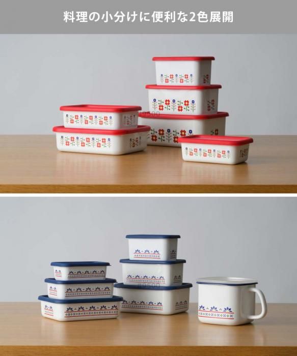 ミーサ 浅型角容器M 0.76L 富士ホーロー MY-M 分類で探す キッチングッズ キッチン小物 保存容器 キャニスター ブランドで探す 富士ホーロー 価格帯(税込) 2,000円台の商品 キッチン ラッピング承ります 北欧をイメージしたデザインの保存容器ミーサシリーズ 琺瑯は酸や塩分に強いため食材の保存に適しています 熱に強いので オーブン調理や冷凍保存にも対応しています fuji-mysa-mym 2,200円(税込) 在庫入荷待ちレッド2,200円(税込)2,200円(税込)ネイビー2,200円(税込)2,200円(税込) 数量 カートに入れる 製品について性能詳細お買い物ガイドクロッカについて 北欧をイメージしたデザインの保存容器 酸や塩分に強く食材の保存に適した琺瑯容器。北欧をイメージしたデザインのミーサシリーズ。 琺瑯は酸や塩分に強いため食材の保存に適しています。表面のガラス質は汚れがつきにくく、匂いうつりも少ないので、キムチなどの発酵性食品のほかさまざまな食材のストックが可能です。また、耐熱性が高いためオーブンでの調理にも使えます。グラタンやパン、焼き菓子の型としてもおすすめです。フタは透明度があり中身が見やすく、縁がエラストマー製なので丈夫で破損しにくいので長持ちします。 ホーロー容器の特徴 表面が硬く、すべすべしたガラス質なので雑菌が繁殖しにくく、衛生的です。 非吸着性が抜群で、容器にニオイがつきません。 ガラス質は中性で不活性。食品と化学反応を起こしにくいので風味を損ないません。 耐久性抜群ですので、オーブンや冷凍庫の保存にも使えます。 酸や塩に極めて強いので食品の保存容器に最適です。 コンロ(直火)やオーブン調理をすることができます。 コンロで 煮物などを保存した容器をそのまま火にかけて温めることができます。 オーブンで グラタンやラザニア、焼き菓子など容器を調理器具として使用できます。 コンロで使用する場合、炒める・炒るなど水分をほとんど使わない調理をすると表面のガラス質が破損する場合があります。カレー、シチューなどは水分が少ないので、かき混ぜながら加熱してください。 サイズ約W17.5×D11.5×H5.5cm(蓋含む) 重量約280g 満水容量0.76L 材質本体:ほうろう用鋼板、蓋:ポリプロピレン,エラストマー ホーローについて 手作業で釉薬を掛けるため、ひとつひとつの表情には多少の個体差が生じます。 ホーローの性質上、焼成時に黒点や色むらの様に見える部位が生じる場合がございます。 鋼板の切り口となる部分は釉薬がかかりにくく、下地の黒いスジが多少見られますが黒い部分もホーロー加工が施されております。上記の様な場合でも不良ではなくご使用には問題ございませんので安心してお使い下さい。 備考 タイ工場製(富士ホーロー 自社工場) 電子レンジ使用不可 日本琺瑯工業会認定Sマーク取得 フタを外してオーブン調理可 サイズS M L製造元富士ホーロー -ふじほうろうふじほーろーRERATED ITEMS関連商品コンテ 深型容器 角型 S KE-DS.LW富士ホーロー 深型容器 角型 M富士ホーロー 深型容器 角型 L富士ホーロー 浅型容器 角型 L富士ホーロー 浅型容器 角型 S富士ホーロー みそポット C-KP
