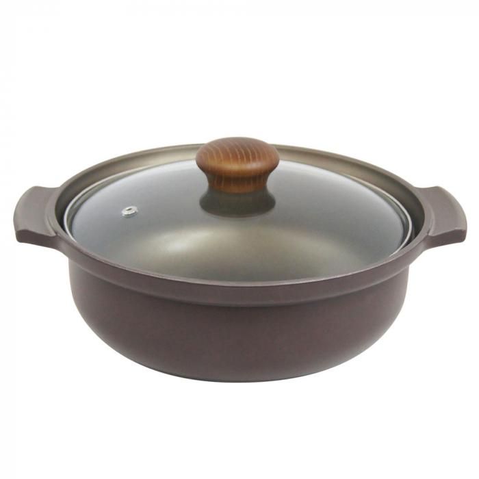 ウルシヤマ金属工業のIH味彩鍋。IHでも使えるアルミ鋳物の卓上鍋です。割れたり欠けたりしないので卓上で使う際にも安心です。