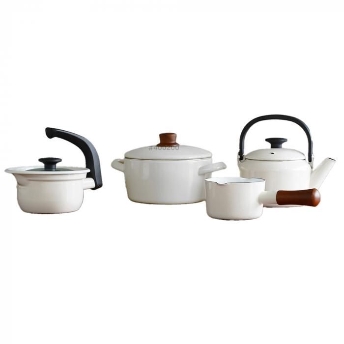 レトロフューチャーなフォルムの片手鍋。琺瑯の優しい素材感をまとった「え〜なポット」。