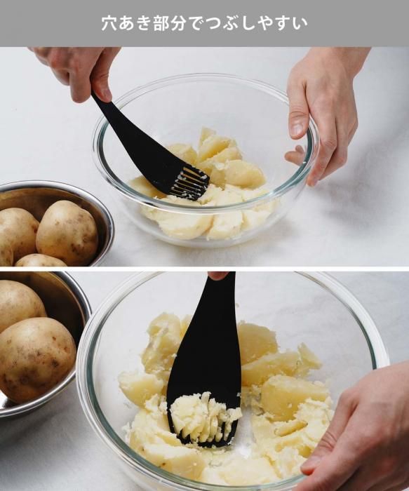 サンクラフト ナイロンポテトマッシャー GF-12B 分類で探す キッチングッズ キッチン小物 調理ツール キッチン小道具 その他キッチン小道具 ブランドで探す サンクラフト 価格帯(税込) 1,000円以下の商品 キッチン用品 ラッピング承ります ポテトのマッシュからかき混ぜ 盛り付けまで一本でできるナイロン製ポテトマッシャーです 穴あきサーバースプーンとして料理の盛り付けにも使えます suncraft-gf12b 715円(税込) 数量 カートに入れる 製品について性能詳細お買い物ガイドクロッカについて ポテトのマッシュからかき混ぜ、盛り付けまで一本でできるナイロン製ポテトマッシャー シンプルだから長持ち。耐熱温度230℃で熱に強い、ナイロン製キッチンツール。 ポテトのマッシュからかき混ぜ、盛り付けまで一本でできるナイロン製ポテトマッシャーです。グラスファイバー入りの丈夫な構造でしっかりとつぶすことができます。ゆで卵やフルーツのマッシュ、離乳食作りにも便利に使えます。穴あきサーバースプーンとして料理の盛り付けにも使えます。 熱に強く、ふっ素樹脂などのコーティングを傷つけない素材なので、調理のフライ返しとしても重宝します。 オールナイロン製で継ぎ目のない洗いやすい形なので衛生的に使えます。食器洗い乾燥機の使用ができるのでお手入れも簡単です。 サイズ約 290 × 60 × 22 mm 材質ナイロン(グラスファイバー含む)(耐熱温度:230℃) 重量約47g 生産国日本 備考 食洗機使用可 鉄製フライパンや鍋のご使用はおやめください。 製造元SUNCRAFT -サンクラフトRERATED ITEMS関連商品コフレヴィーノ ポッシュ ソムリエナイフ ステンレス フォイルカッター・コークスクリュー・栓抜き・プチナイフ・拡大鏡コフレヴィーノ グラス ソムリエナイフ ワインリング ポアラーウチクック おろしスプーン UCS6ウチクック マッシャーフォーク UCS8LEYE 野菜をうつわに ベジココスプーン LS1529 AUX