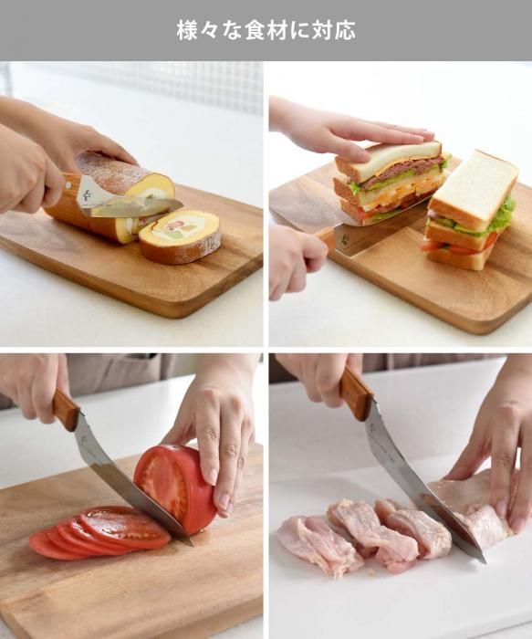 刃渡り16.5cmと短いので、パンをカットする以外に普段のお料理にも活躍してくれますし、収納性も大幅にアップしました。アウトドアに持ち出して、ホットサンド用のナイフとしても便利です。