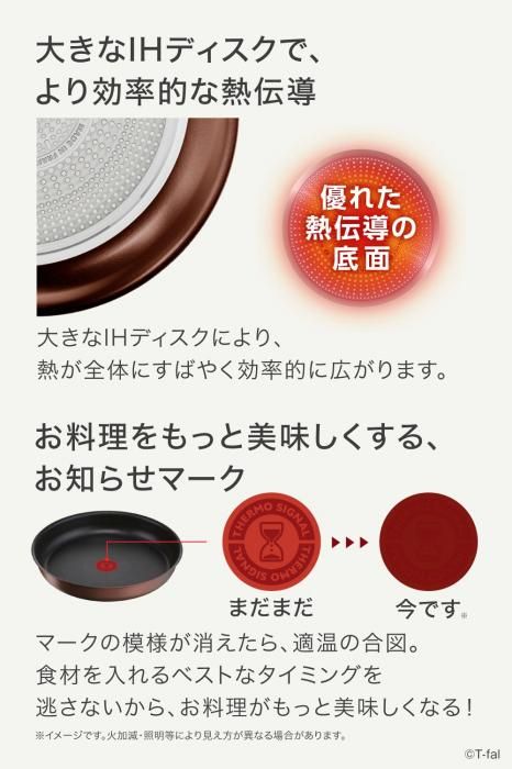 底面のディスクを極限まで大きくしたことで、熱伝導がより効率的に。すばやく均一な熱伝導で、食材の旨味を封じ込めます。