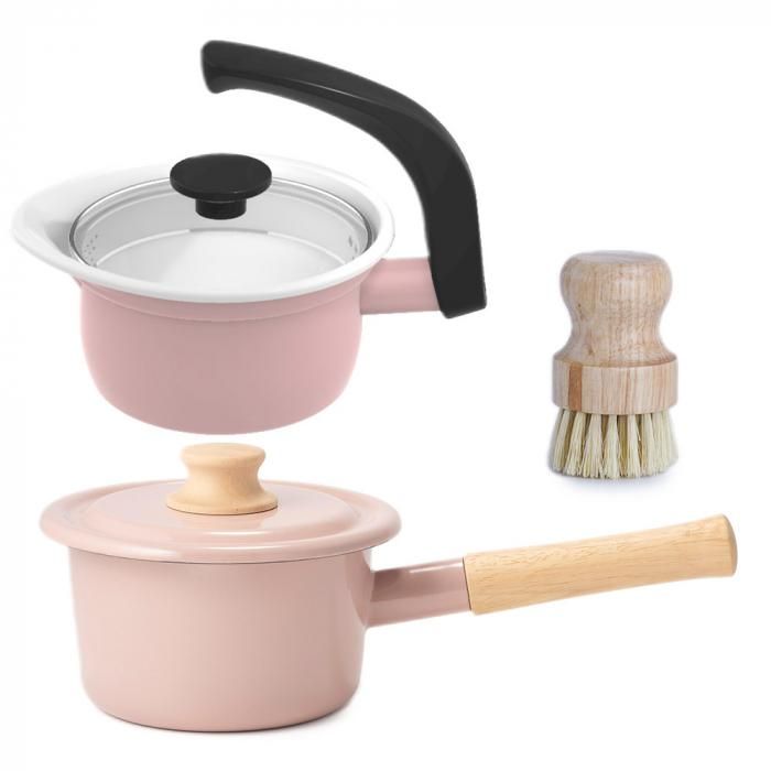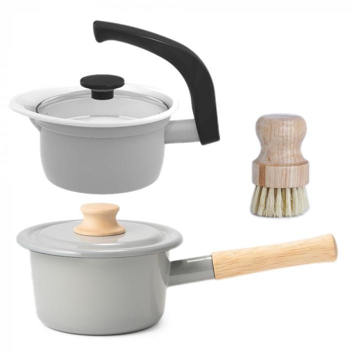 使い勝手の良い片手鍋2点とお手入れに便利なパームブラシのセット