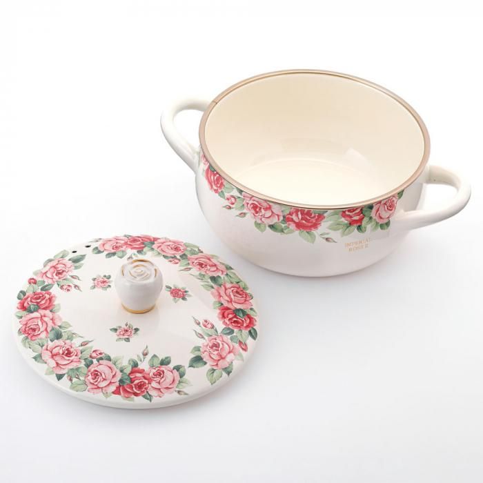 キレイなバラ柄が人気のインペリアルローズシリーズ。蓋のつまみは陶器で出来ており、バラのつぼみをモチーフにしたかわいい形。