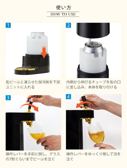 グリーンハウス スタンドビールサーバー 電池式 缶専用 GH-BEERT-BK 送料無料 ブランドで探す グリーンハウス 価格帯(税込) 9,000円台の商品 キッチン用品 送料無料 ラッピング承ります 毎秒4万回の超音波振動が生む クリーミーな泡 コンパクトになったスタンドビールサーバー 各社の缶ビール330ml/350ml/500mlに対応 キンキンを長く楽しめる氷点下保冷剤が付属 gh-beert-bk 9,980円(税込) 0円 在庫入荷待ち9,980円(税込)9,980円(税込) 数量 カートに入れる 製品について性能詳細お買い物ガイドクロッカについて 毎秒40,000回の超音波振動が生む、クリーミーな泡 ビールがもっとうまくなる!コンパクトになったスタンドビールサーバー。幅11cm奥行17cm高さ35cmのコンパクト設計、さらにレバーも取り外せるので省スペースでも収納できます。 1秒間に約4万回もの超高速振動で、きめ細かくクリーミーな泡を生み出します。 泡は旨さを守るフタの役割をします。炭酸ガスを閉じ込めて、ビールが空気に触れることによる味の劣化を防ぎます。泡はホップの苦味成分であるイソフムロンなどでできており、泡に苦味を集めることで、ビールをまろやかに仕上げます。 自宅でまるでお店のような本格ビールを楽しめます。 超音波が生み出す1秒間、約4万回の泡 こだわりのジョッキやグラスで、どんなグラスでもOK 各社の缶ビール(330ml/350ml/500ml)に対応した全体加圧方式を採用 簡単メンテナンス、さらに洗いやすく衛生的に 電源部分(上部ユニット)を取り外し可能、注ぎ口を丸洗いできて衛生的 キンキンを味わえる!氷点下保冷剤を付属 コンパクト設計で収納ラクラク 電源単3型アルカリ乾電池/単3形ニッケル水素充電池×2電池は付属しません。 振動周波数40KHz 電池持続時間約1時間 サイズW110×D173×H352(mm)レバー+ゴム足含む 重量約723g 対応している缶サイズ330ml、350ml、500mlのビール・発泡酒・新ジャンル・ノンアルコールビール 材質ABS、シリコンゴム 備考 製造元保証6ヶ月間