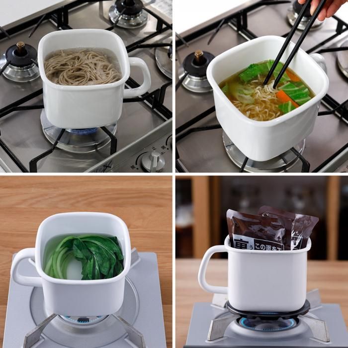 コンパクトなので、調理中にコンロ上で邪魔にならず、茹で物や揚げ物、レトルトパックの温めなどに活躍。一人分のラーメン作りにちょうど良いサイズ感。