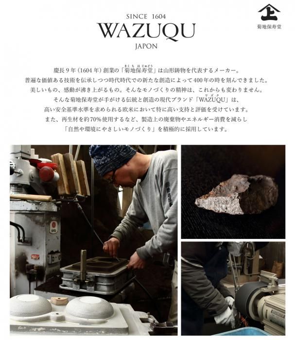 ワズク まゆ SS 黒 330ml 山形鋳物 菊地保寿堂 送料無料 ブランドで探す 菊地保寿堂 価格帯(税込) 1万円台の商品 キッチン用品 送料無料 ラッピング承ります 茶器酒器に注ぎ口の切れ味とカタチに味わいを求めた「まゆ」 取っ手は 刀の美しさを感触的な形状に造り上げています wc-wazuqu-80004 16,500円(税込) 0円 数量 カートに入れる 製品について性能詳細お買い物ガイドクロッカについて 茶器酒器に注ぎ口の切れ味とカタチに味わいを求めた「まゆ」 お茶に適切な温度を保つ鉄素材、付属する茶こしも茶葉からお茶が美味しく抽出されるように設計されています。内側は手作業にて丁寧に琺瑯加工されております。日本茶の急須として、紅茶、中国茶などの茶器としてはもちろん、コーヒードリップ 用のポットとして。現代の生活でも美味しく安全なお湯を沸かし出す鉄瓶を気軽にご利用できるよう作られています。口当たりいい美味しいお湯でお茶やコーヒーをご堪能ください。また茶こし付きなので、お茶漬け用の出汁とりに便利です。 サイズ約W120×D91×H145mm口径:約62mm 満水容量330ml 重量約550g 材質本体:鋼鉄(外側:焼付塗装・本体内側:ホーロー加工)ツル:アルミ合金茶こし:ステンレス 生産国日本 備考 電子レンジ・食器洗浄器、乾燥機・IH調理器でのご使用はできません。 火にかけてお湯を沸かすことはできません。お湯を注いで急須としてお使いください。 製造元菊地保寿堂 -きくちほじゅどう