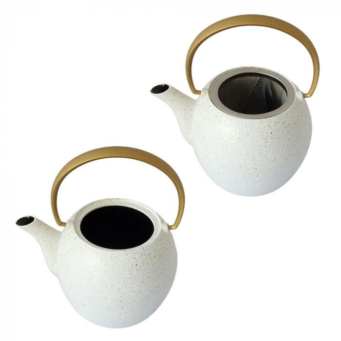 お茶に適切な温度を保つ鉄素材、付属する茶こしも茶葉からお茶が美味しく抽出されるように設計されています。