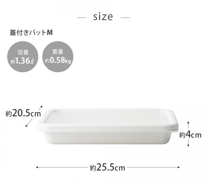 蓋付きバット M 富士ホーロー N-VTF-M 送料無料食材の下ごしらえから保存まで幅広く使えるフタ付きバット 餃子 マリネ 味噌漬けなどに活躍し 付属のフタを使用すれば 余った食材を素早く簡単に保存することができます fuji-nvtf-m 2,860円(税込)0円 在庫入荷待ち2,860円(税込)2,860円(税込) 数量 カートに入れる 製品について性能詳細お買い物ガイドクロッカについて食材の下ごしらえから保存まで幅広く使える保存容器 餃子、刺身の柵、マリネ、味噌漬けなど料理の下ごしらえに活躍し、付属のフタを使用すれば、余った食材を素早く簡単に保存することができます。フタには柔軟性のあるエラストマー樹脂を使用。開けやすく、丈夫な素材です。フタを外せばオーブン調理が可能。お菓子やパンを焼いたり、グラタン皿としてもお使いいただけます。 サイズW25.5×D20.5×4.0cm 重量約580g 満水容量1.36L 材質本体:ほうろう用鋼板、蓋:ポリプロピレン,可塑性エラストマー 生産国タイ(富士ホーロー 自社工場) ホーローについて・手作業で釉薬を掛けるため、ひとつひとつの表情には多少の個体差が生じます。・ホーローの性質上、焼成時に黒点や色むらの様に見える部位が生じる場合がございます。・鋼板の切り口となる部分は釉薬がかかりにくく、下地の黒いスジが多少見られますが黒い部分もホーロー加工が施されております。※上記の様な場合でも不良ではなくご使用には問題ございませんので安心してお使い下さい。 備考○電子レンジ使用不可○バットのみオーブン、食洗機使用可○日本琺瑯工業会認定Sマーク取得 サイズM L