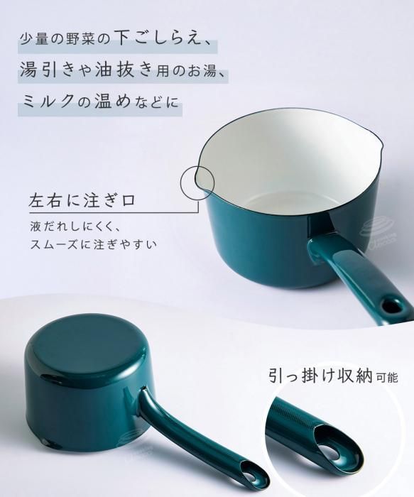 匠シリーズ 12cmミルクパンは、琺瑯製でガス火はもちろんIH調理器でも熱効率良く加熱できます。ドリンクの温めや少量の野菜の下ごしらえ、湯引きや油抜き用のお湯を沸かすなどに適したサイズです。