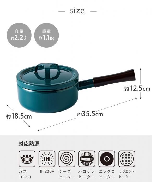 匠シリーズ 18cm片手鍋は、琺瑯製でガス火はもちろんIH調理器でも熱効率良く加熱できます。和食で使う雪平鍋のように使えます。炒め煮や具だくさんのお味噌汁などを作るときにおすすめです。